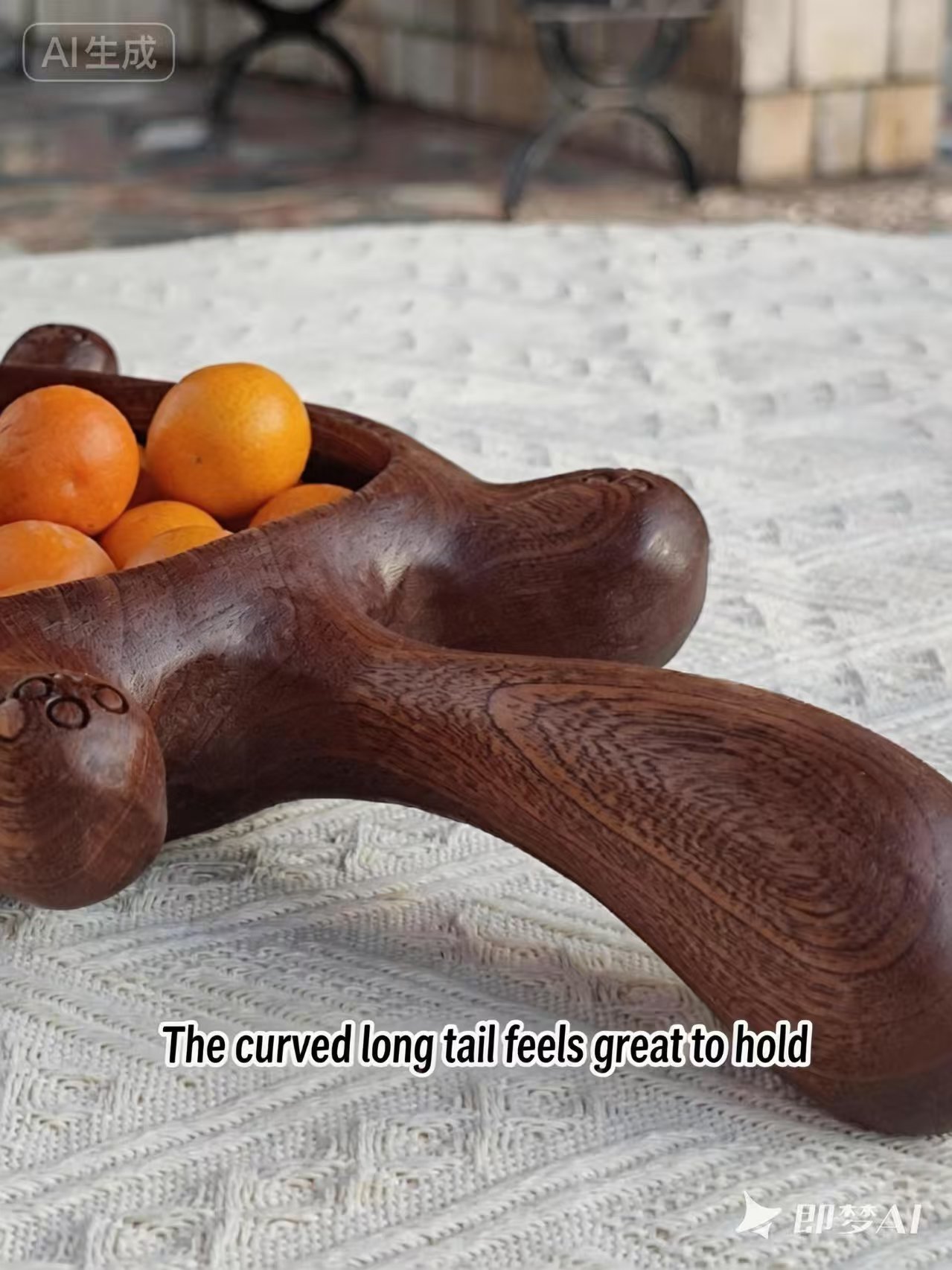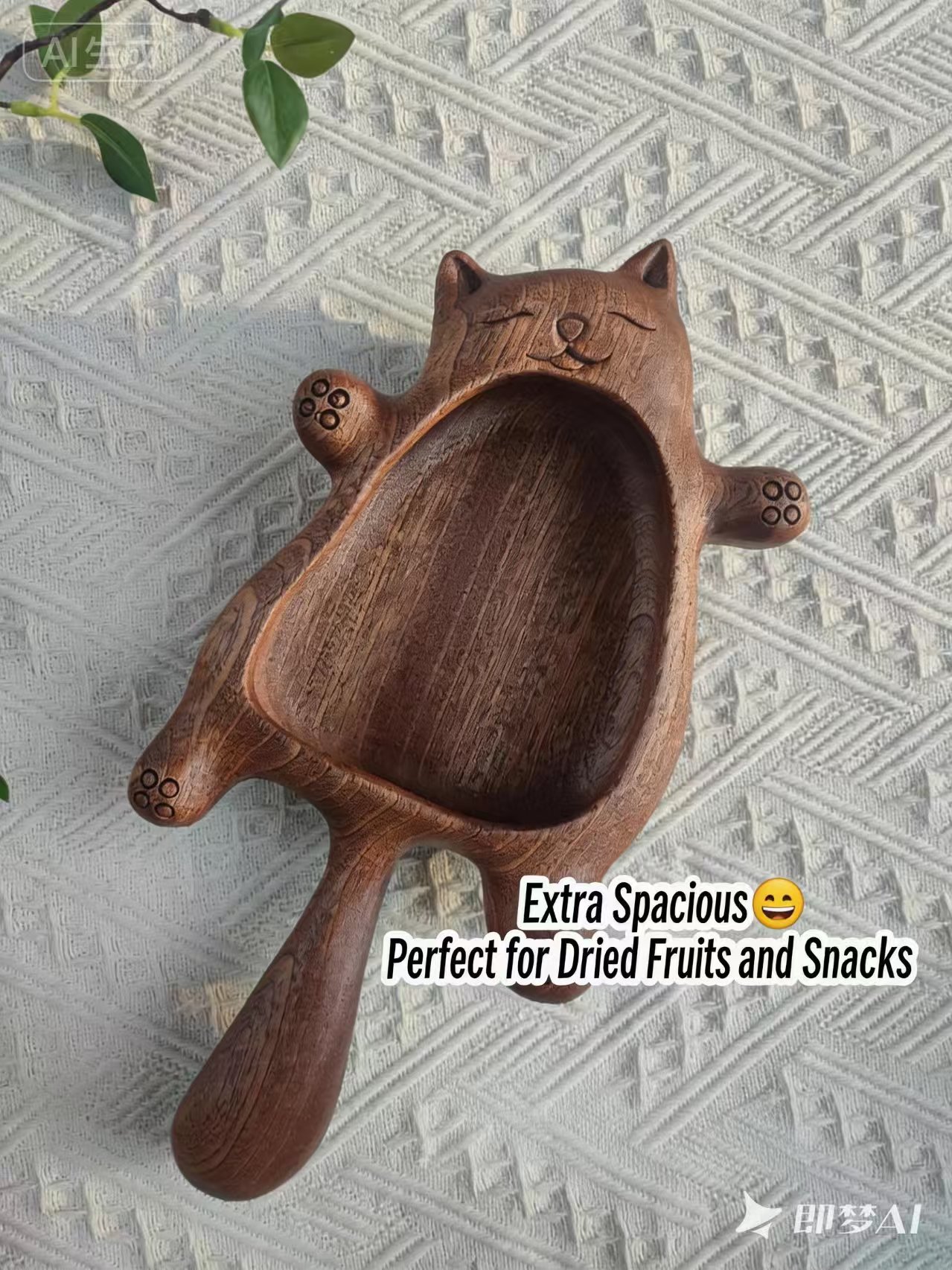 Original hand-carved wooden “Healing Series ‘Lazy Kitty'” fruit and snack plate. Length: 33 cm, Width: 17 cm, Height: 5 cm